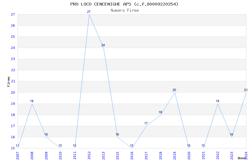 | 2012 | 27 | 326,62 | 12,10 | 37.426 | 3.461 | 225 | 3 |