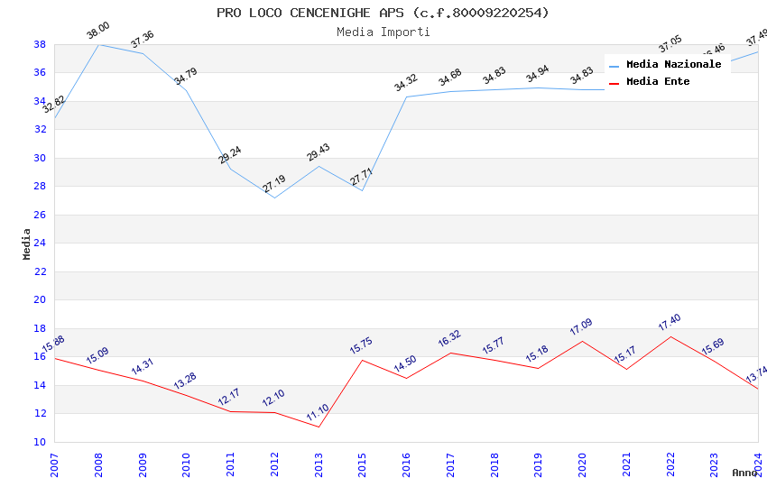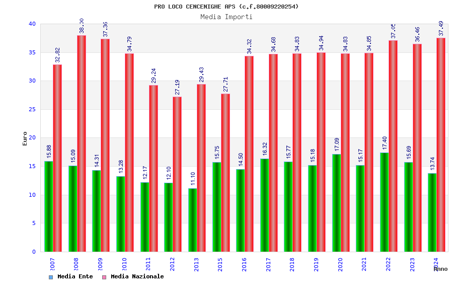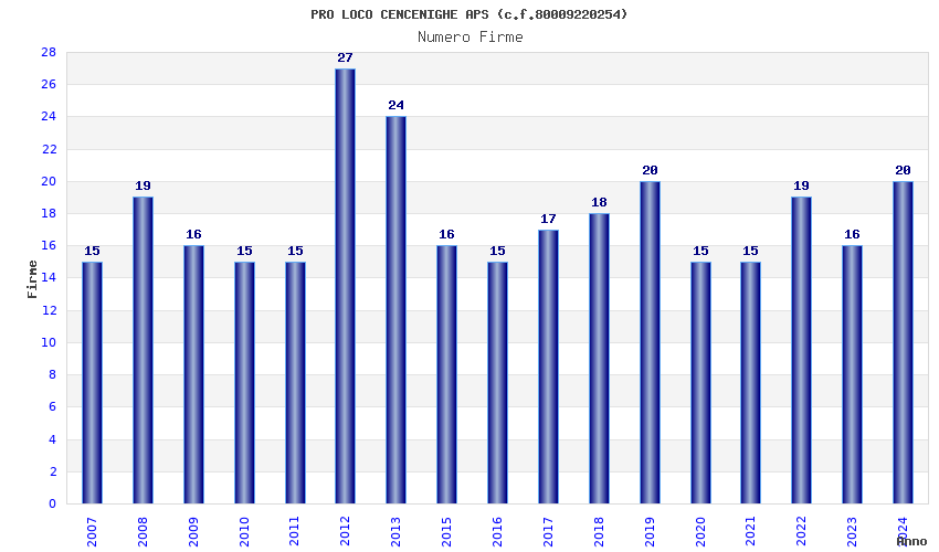 | Anno | Firme | Importi | Media | Naz. | Reg. | Prov. | Comu. |