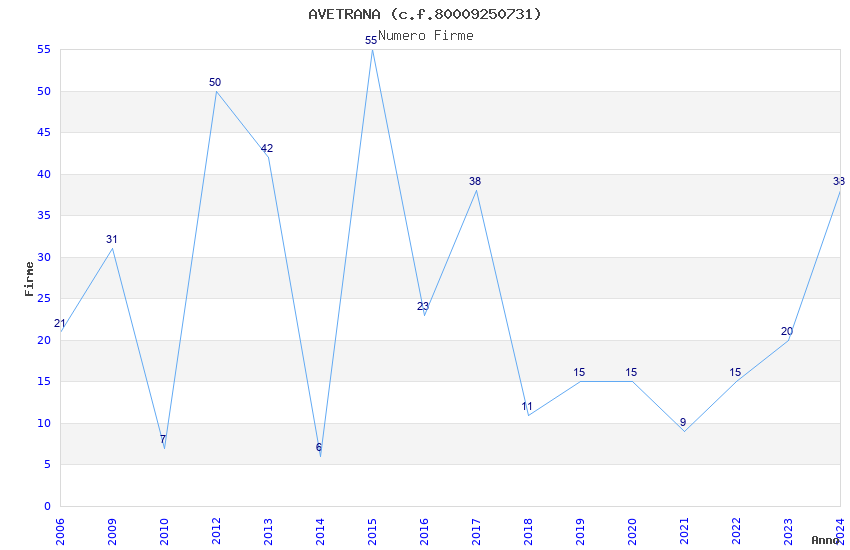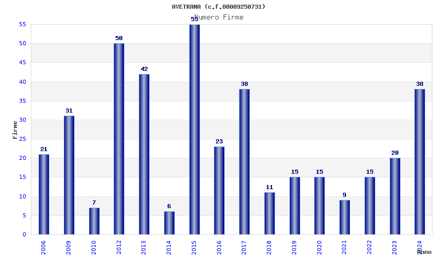Anno Firme Importi Media Naz. Reg. Prov. Comu.