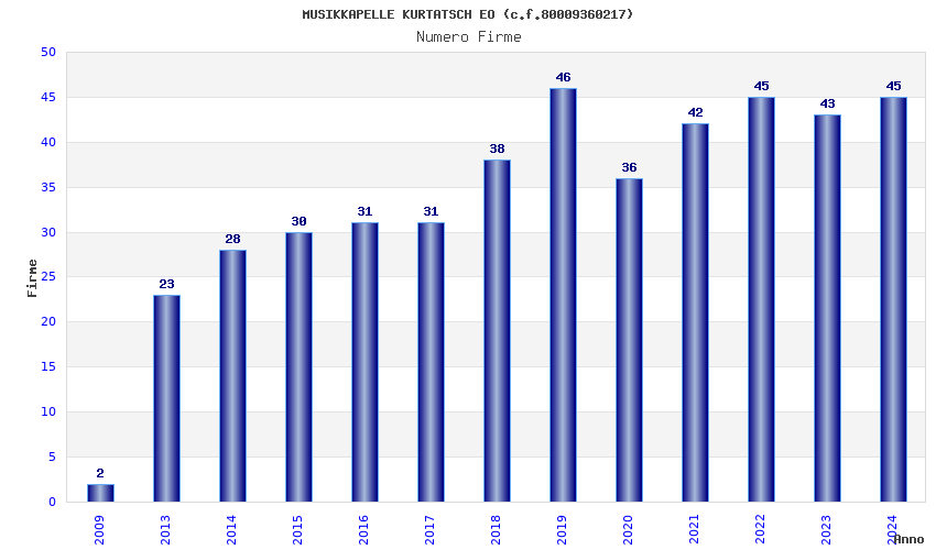| 2024 | 45 | 2.087,37 | 46,39 | 23.295 | 718 | 392 | 2 |