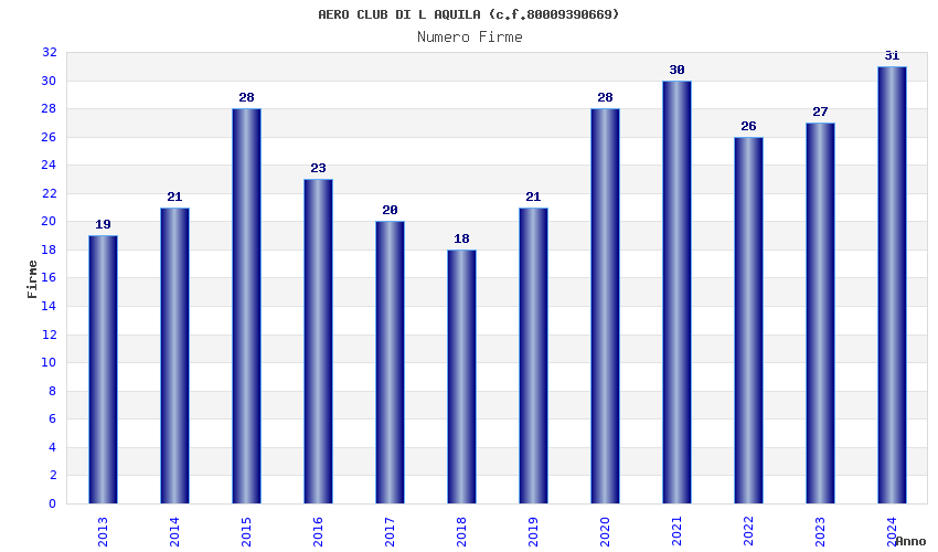 | Anno | Firme | Importi | Media | Naz. | Reg. | Prov. | Comu. |