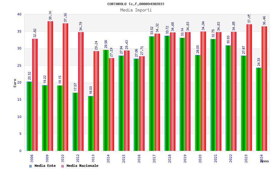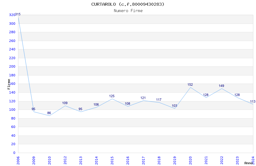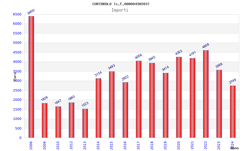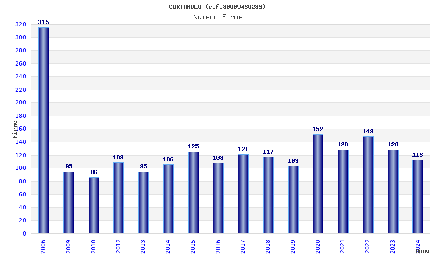 | Anno | Firme | Importi | Media | Naz. | Reg. | Prov. | Comu. |