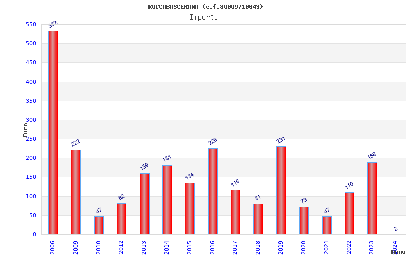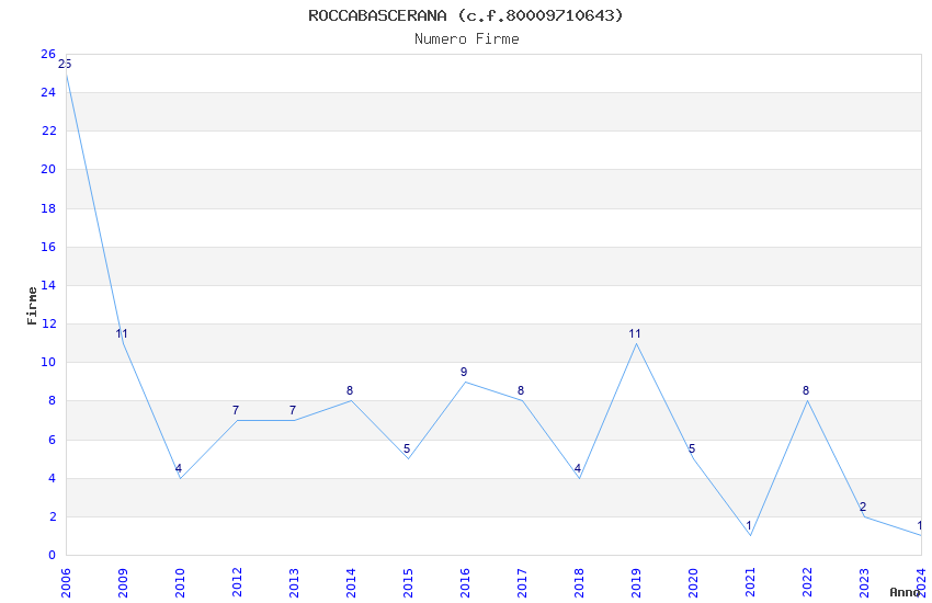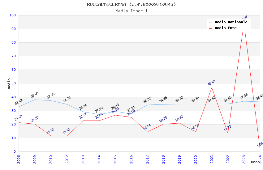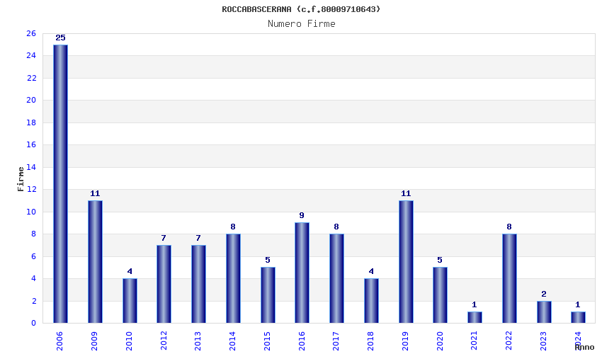| Anno | Firme | Importi | Media | Naz. | Reg. | Prov. | Comu. |
