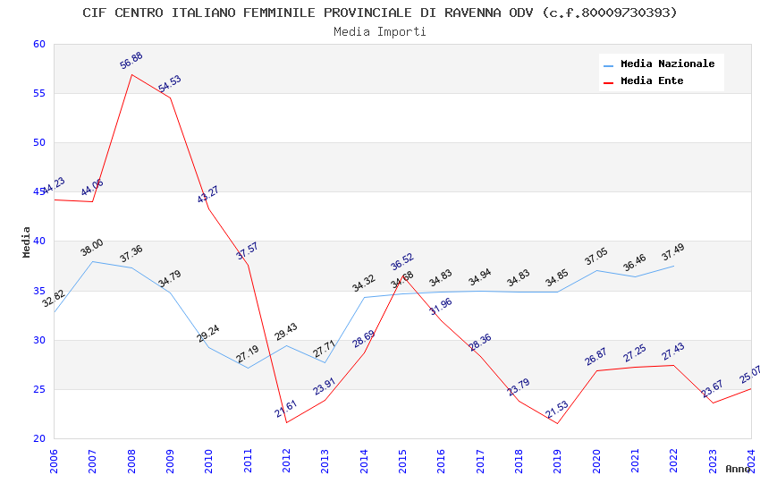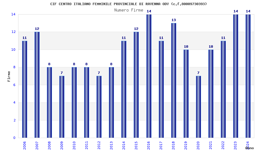 | Anno | Firme | Importi | Media | Naz. | Reg. | Prov. | Comu. |
