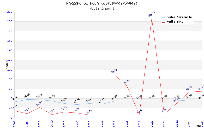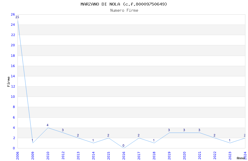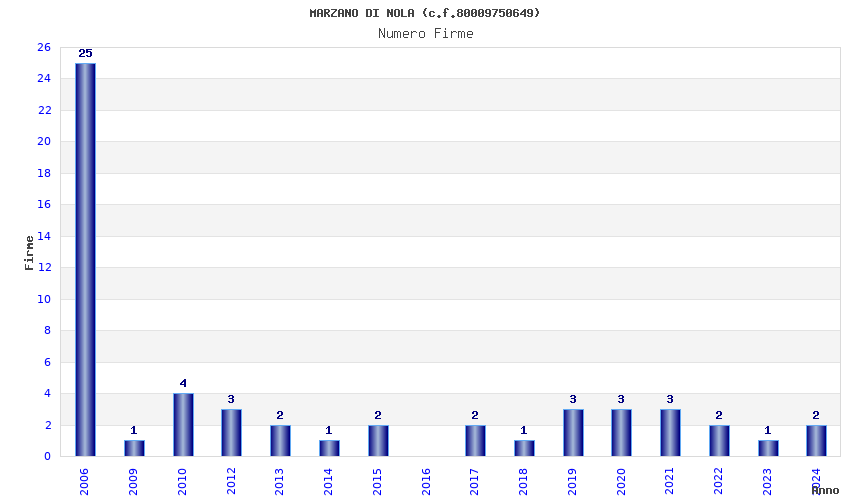 | Anno | Firme | Importi | Media | Naz. | Reg. | Prov. | Comu. |