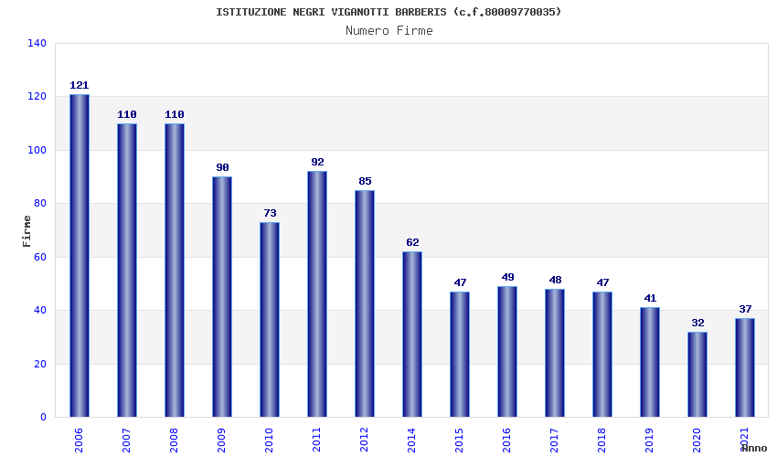 | Anno | Firme | Importi | Media | Naz. | Reg. | Prov. | Comu. |