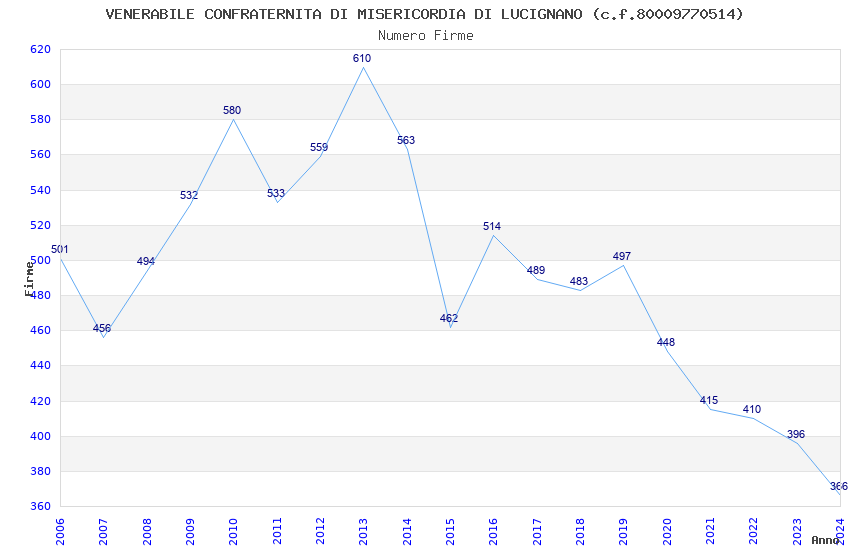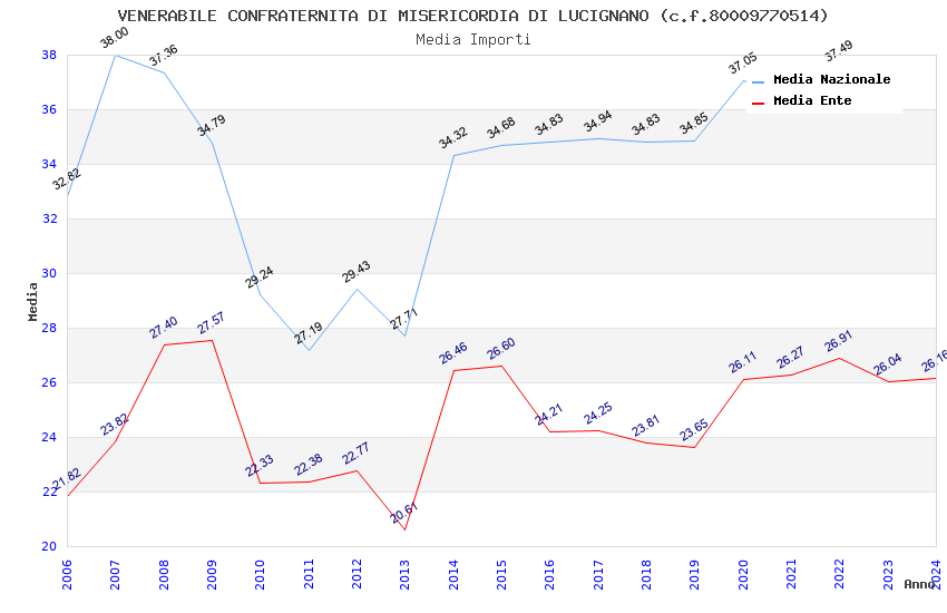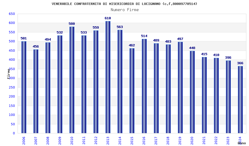 | Anno | Firme | Importi | Media | Naz. | Reg. | Prov. | Comu. |