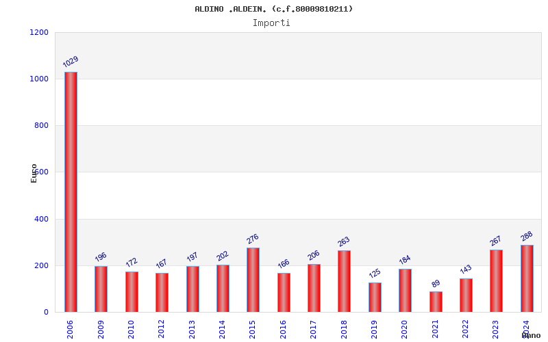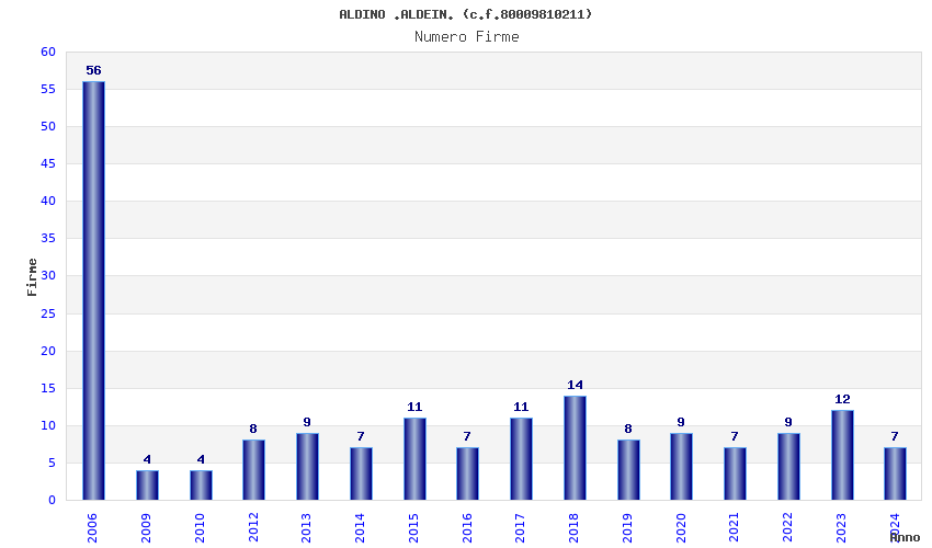 | Anno | Firme | Importi | Media | Naz. | Reg. | Prov. | Comu. |