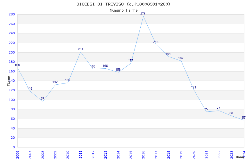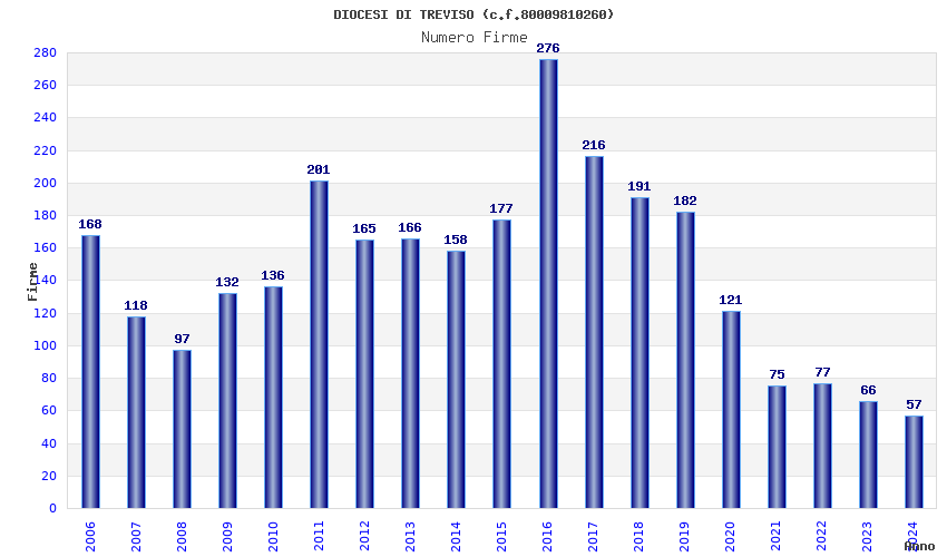 | Anno | Firme | Importi | Media | Naz. | Reg. | Prov. | Comu. |
