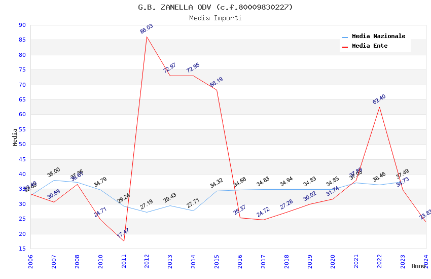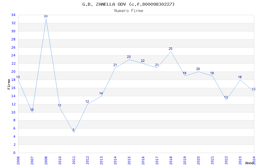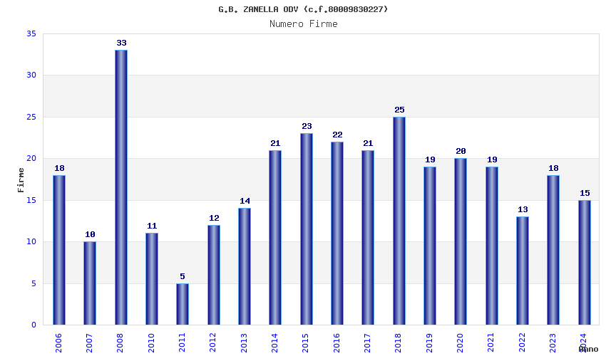 | Anno | Firme | Importi | Media | Naz. | Reg. | Prov. | Comu. |