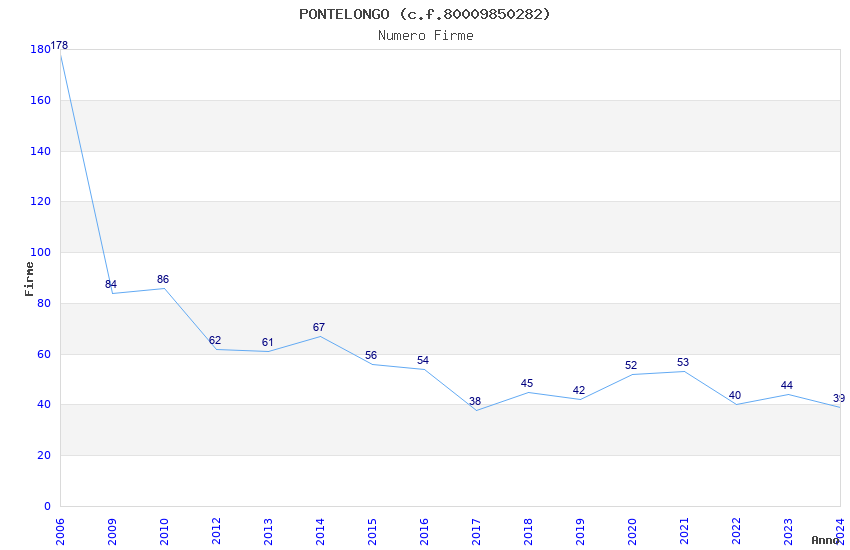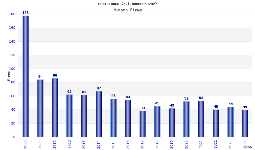 | Anno | Firme | Importi | Media | Naz. | Reg. | Prov. | Comu. |