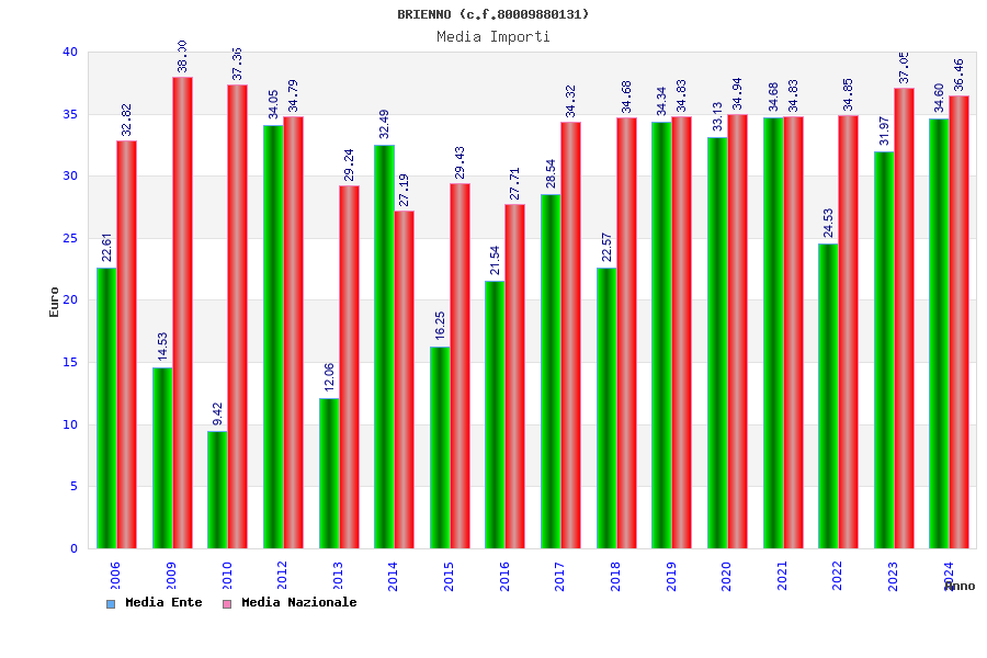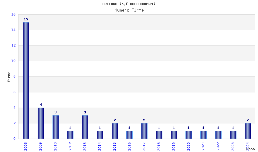 | Anno | Firme | Importi | Media | Naz. | Reg. | Prov. | Comu. |