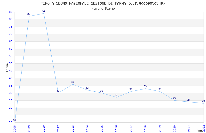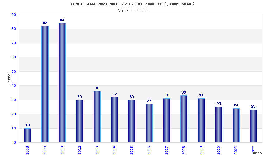 | Anno | Firme | Importi | Media | Naz. | Reg. | Prov. | Comu. |