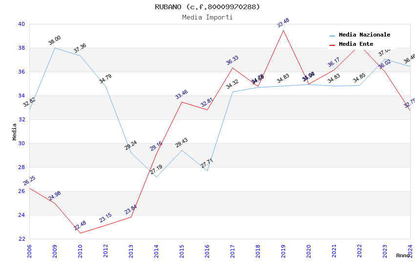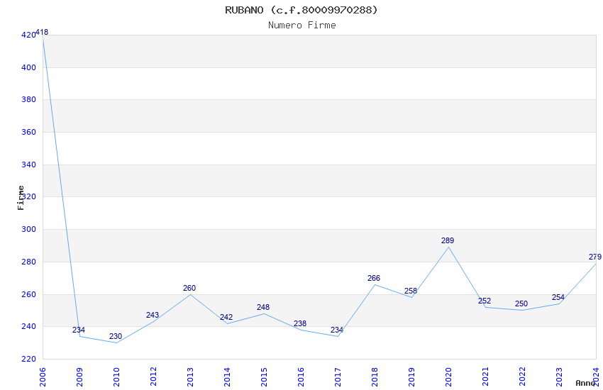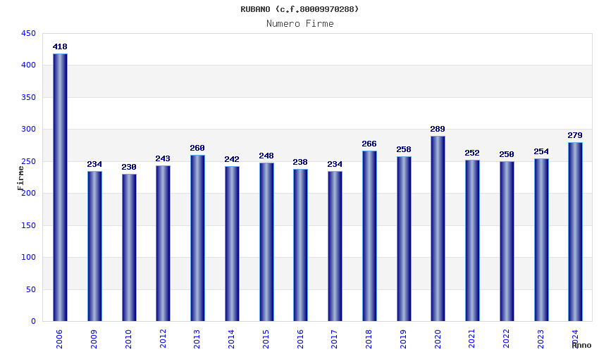 | Anno | Firme | Importi | Media | Naz. | Reg. | Prov. | Comu. |