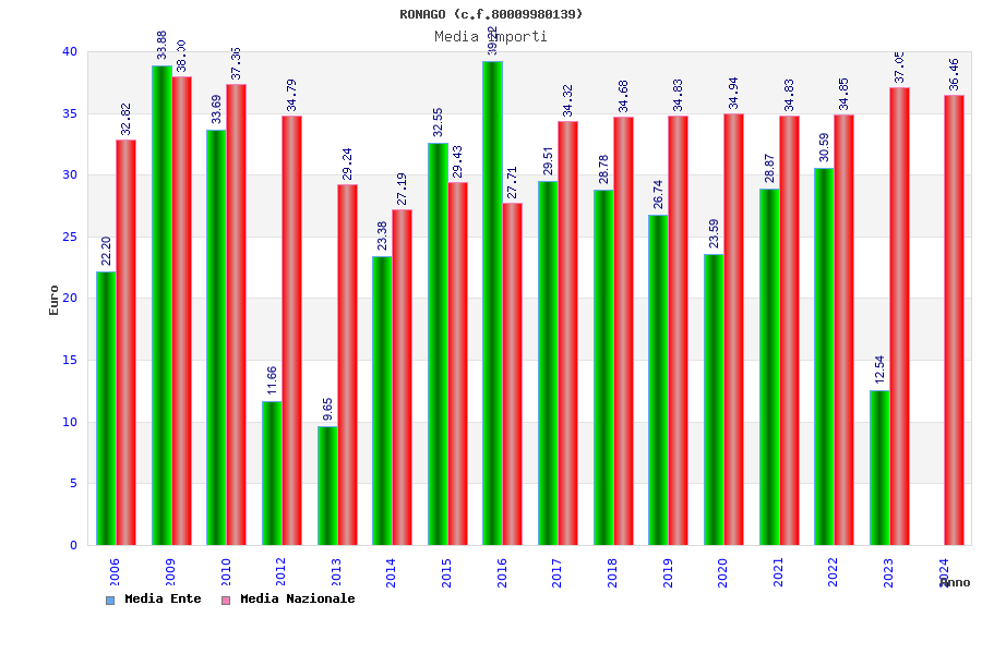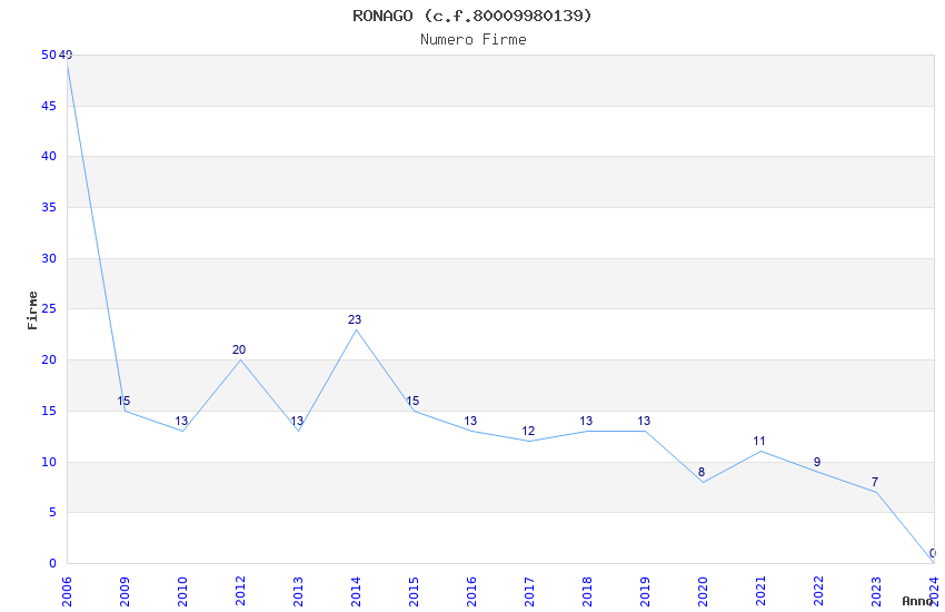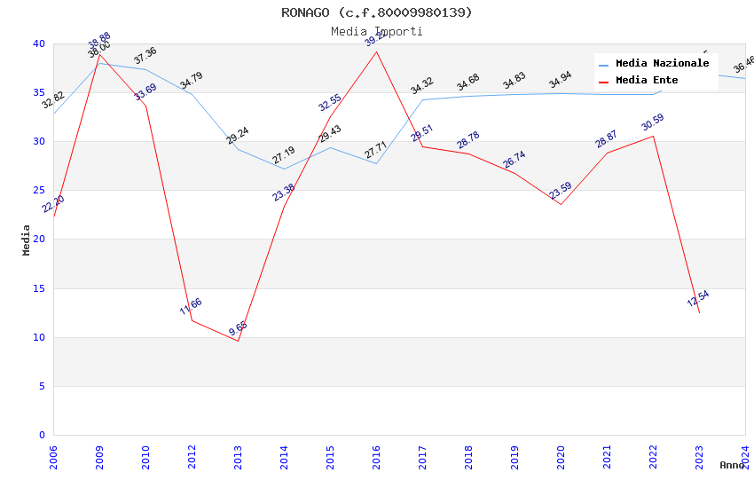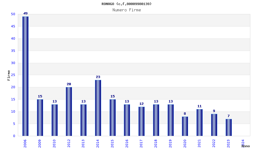 | Anno | Firme | Importi | Media | Naz. | Reg. | Prov. | Comu. |