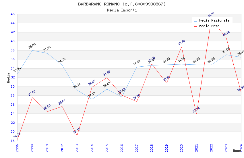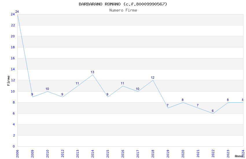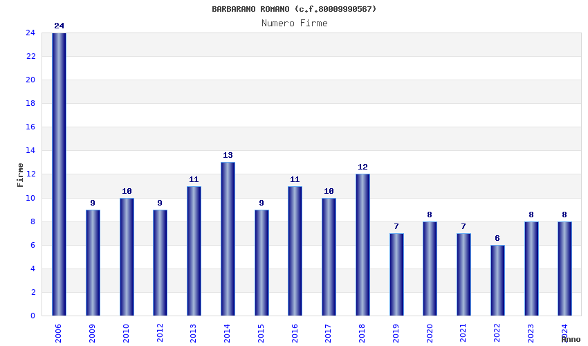 | Anno | Firme | Importi | Media | Naz. | Reg. | Prov. | Comu. |