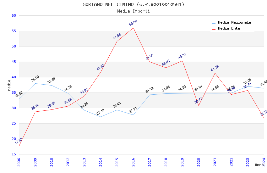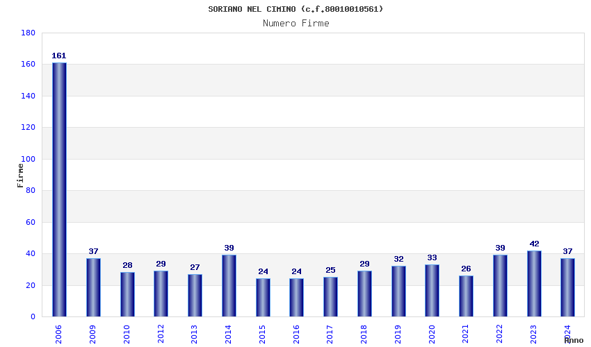 | Anno | Firme | Importi | Media | Naz. | Reg. | Prov. | Comu. |