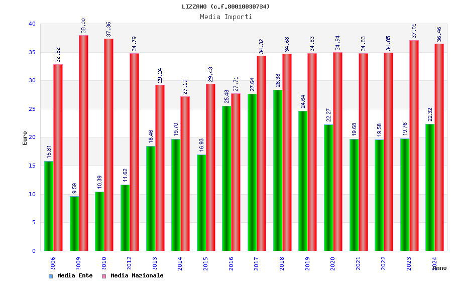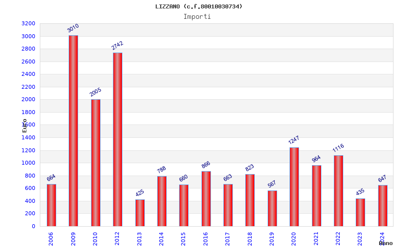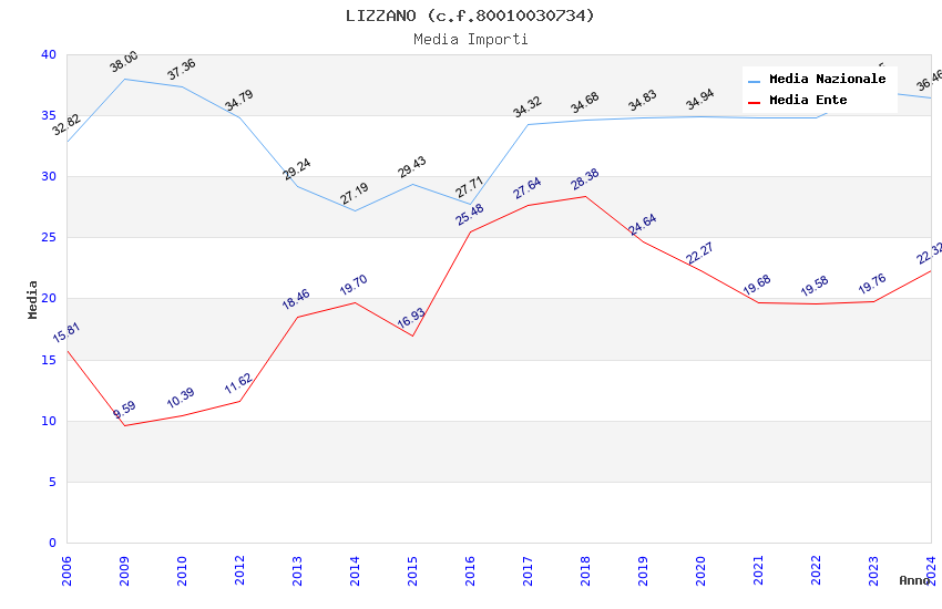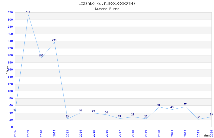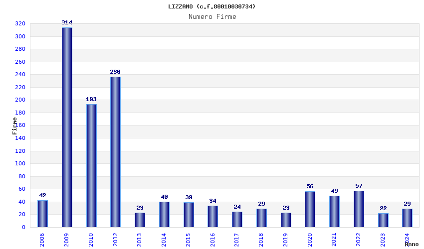 | Anno | Firme | Importi | Media | Naz. | Reg. | Prov. | Comu. |