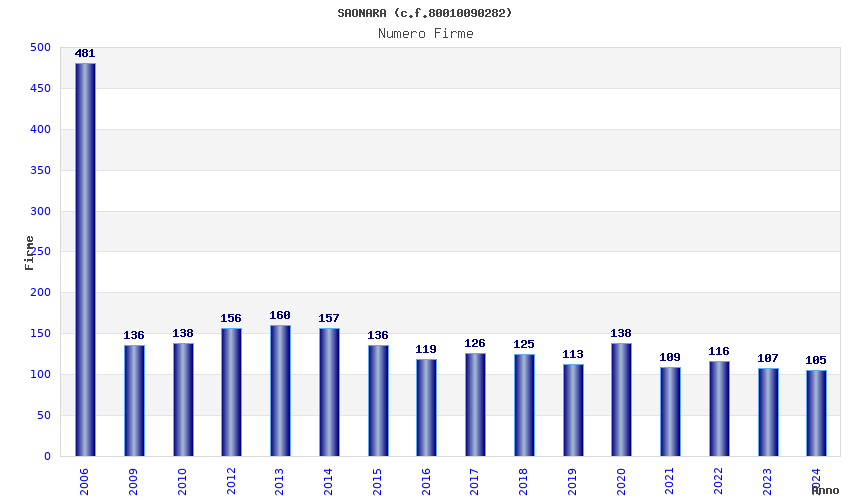 | Anno | Firme | Importi | Media | Naz. | Reg. | Prov. | Comu. |