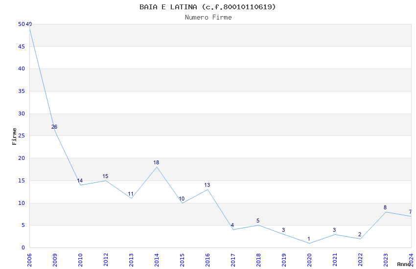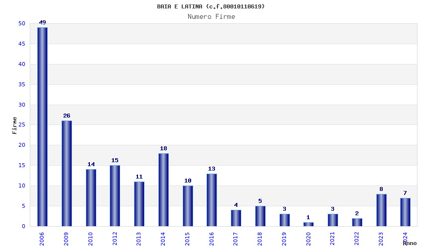 | Anno | Firme | Importi | Media | Naz. | Reg. | Prov. | Comu. |