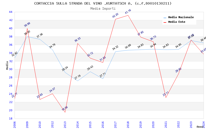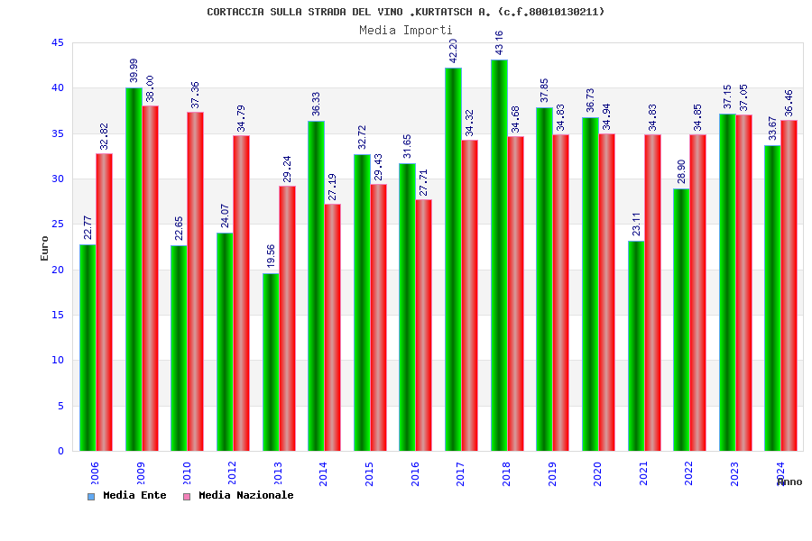 | Anno | Firme | Importi | Media | Naz. | Reg. | Prov. | Comu. |