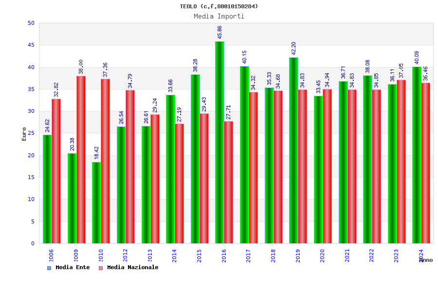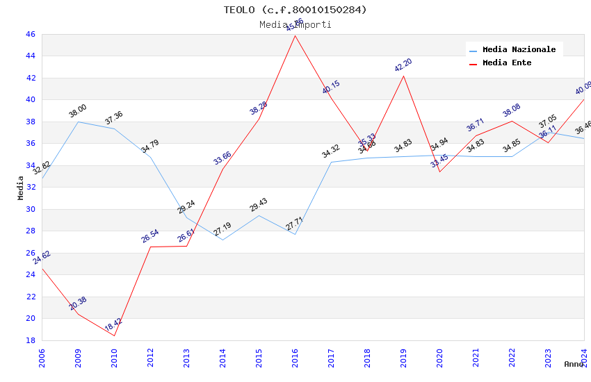 | Anno | Firme | Importi | Media | Naz. | Reg. | Prov. | Comu. |