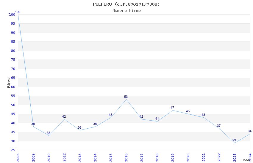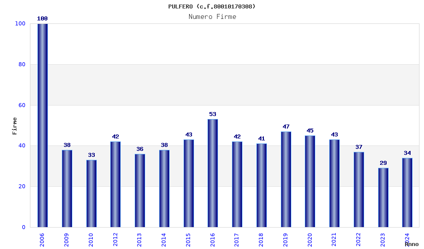 | Anno | Firme | Importi | Media | Naz. | Reg. | Prov. | Comu. |