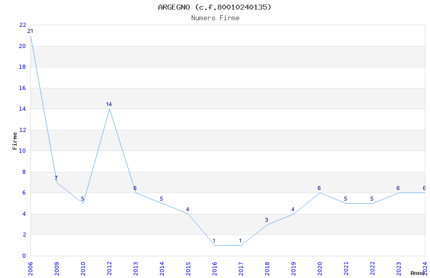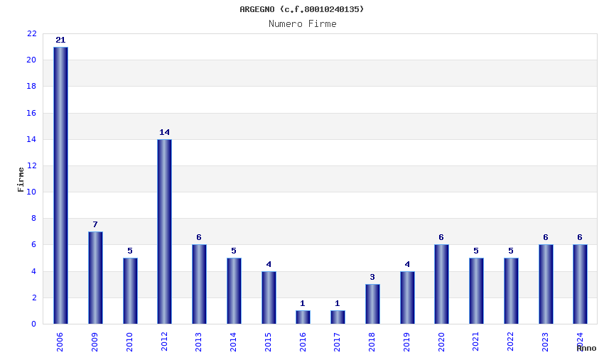 | Anno | Firme | Importi | Media | Naz. | Reg. | Prov. | Comu. |
