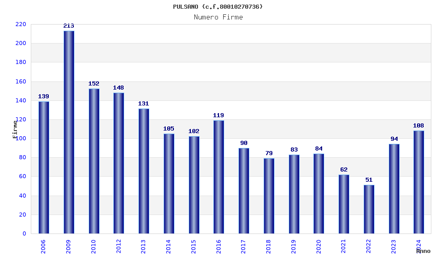 Anno Firme Importi Media Naz. Reg. Prov. Comu.