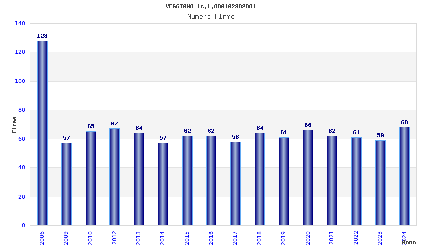 | Anno | Firme | Importi | Media | Naz. | Reg. | Prov. | Comu. |