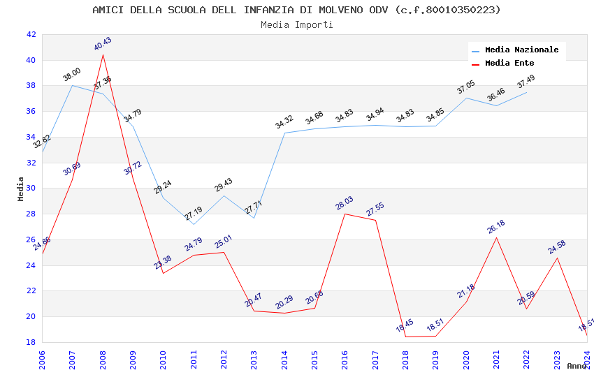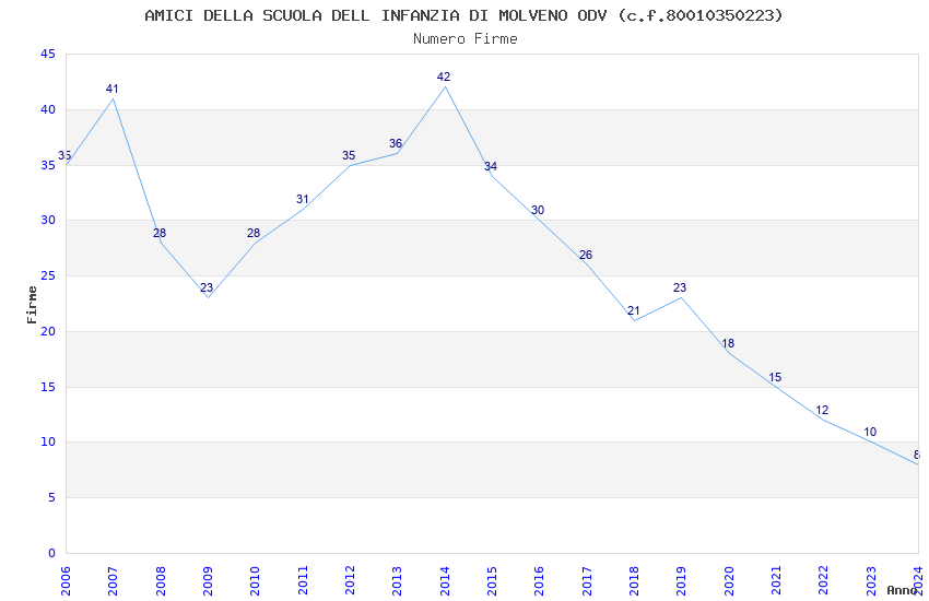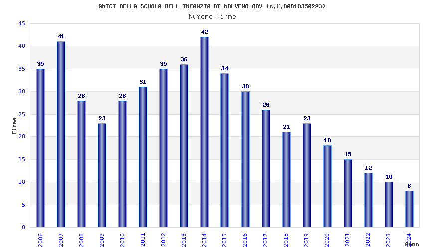 | Anno | Firme | Importi | Media | Naz. | Reg. | Prov. | Comu. |