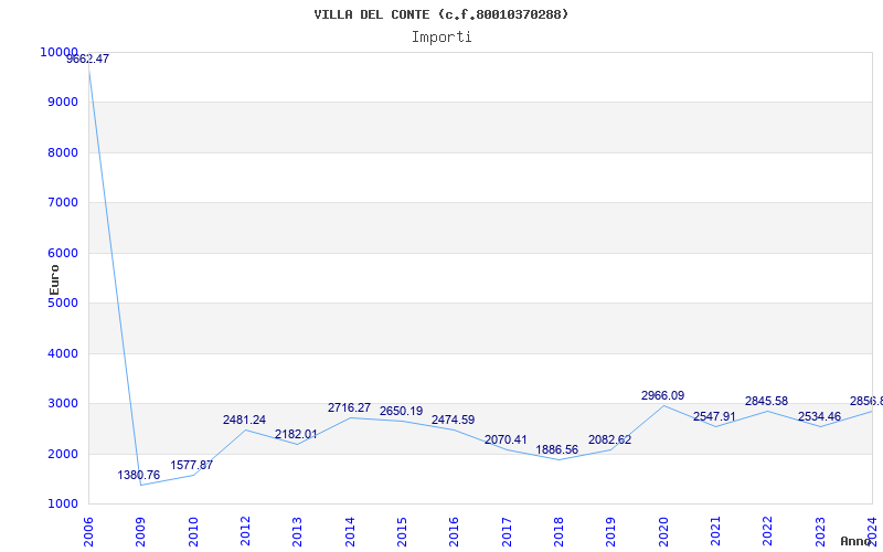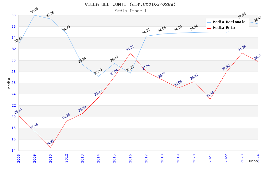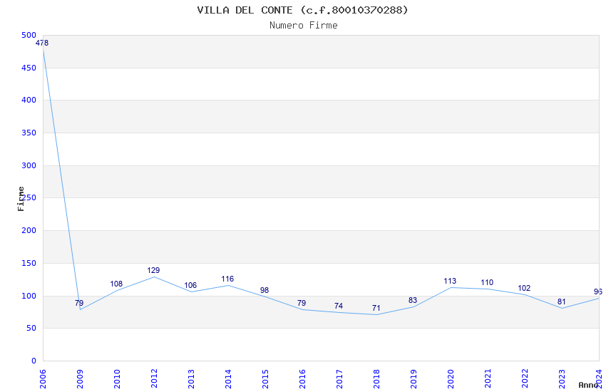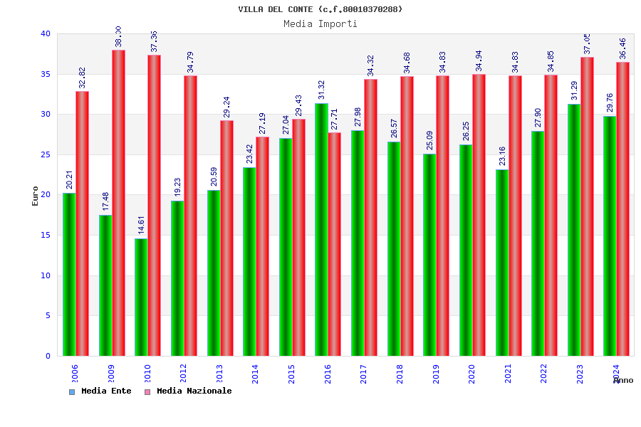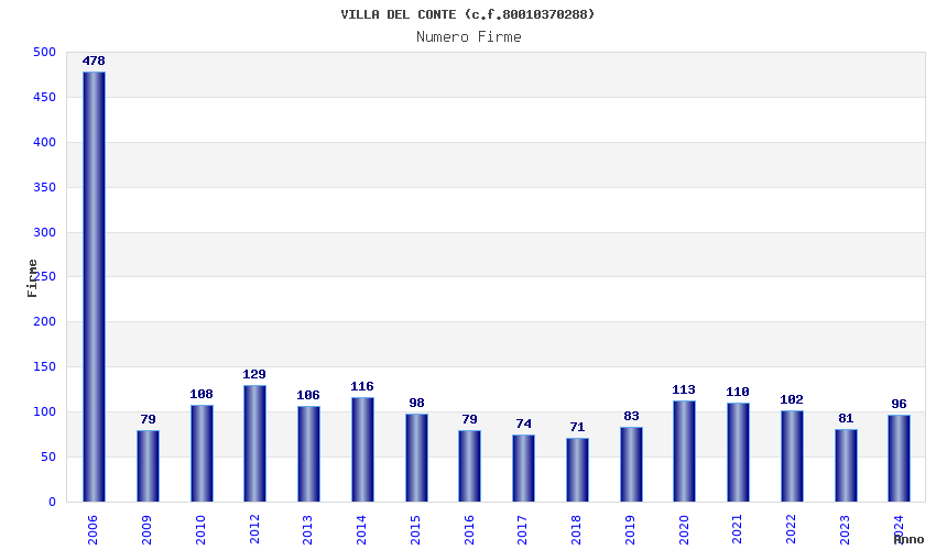 | Anno | Firme | Importi | Media | Naz. | Reg. | Prov. | Comu. |