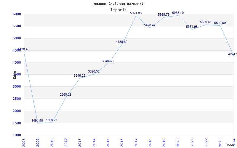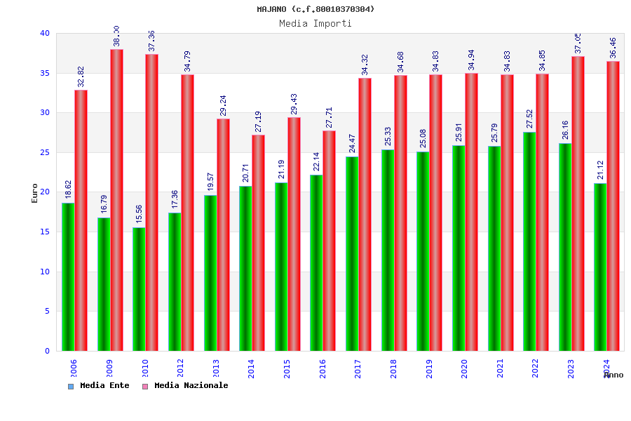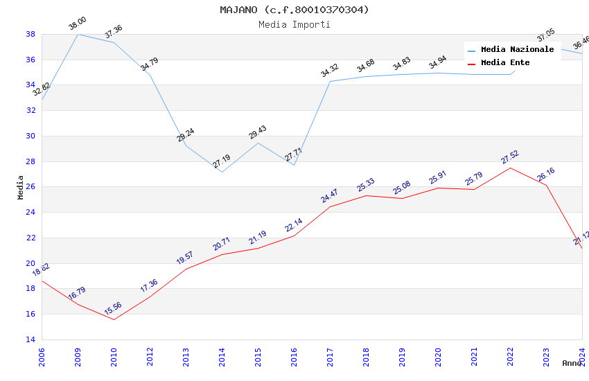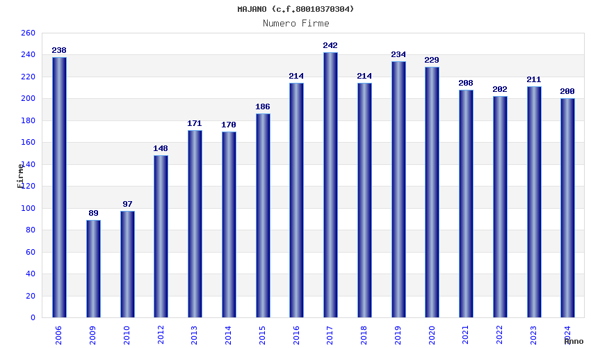 | Anno | Firme | Importi | Media | Naz. | Reg. | Prov. | Comu. |