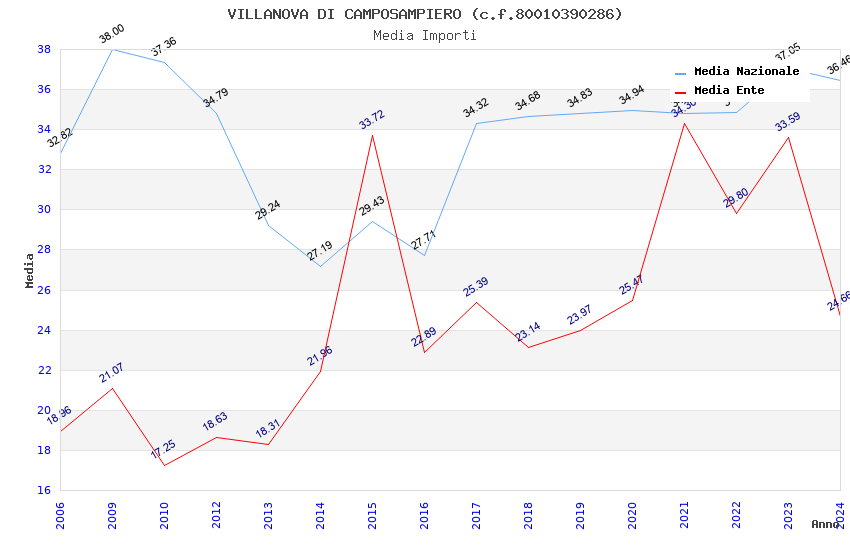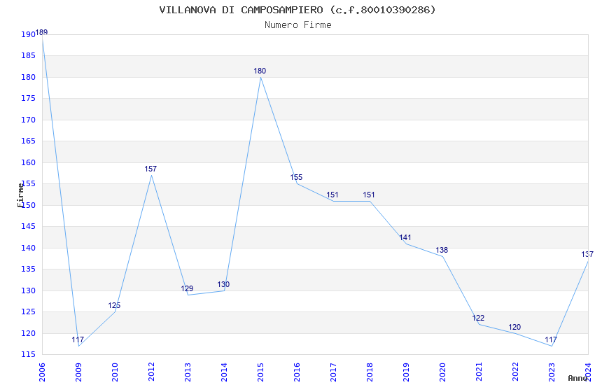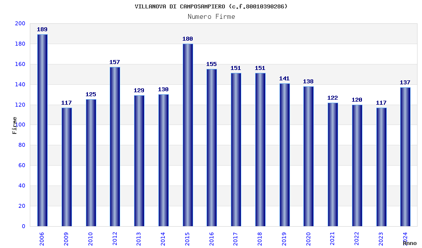 | Anno | Firme | Importi | Media | Naz. | Reg. | Prov. | Comu. |