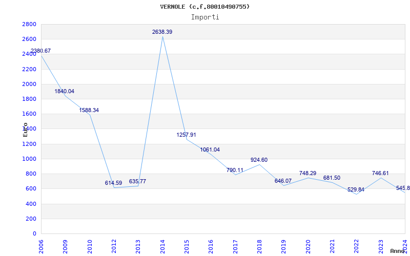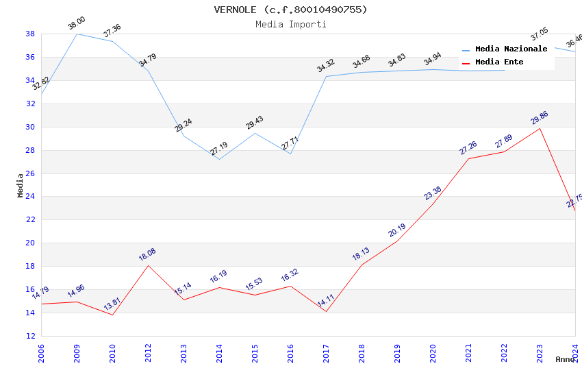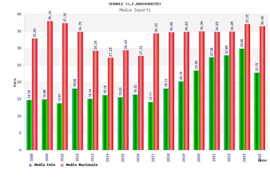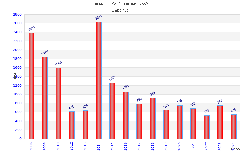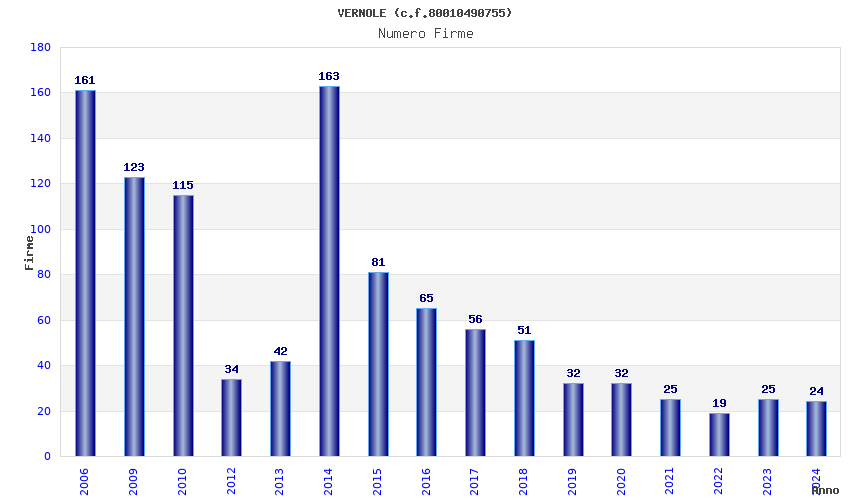 | Anno | Firme | Importi | Media | Naz. | Reg. | Prov. | Comu. |