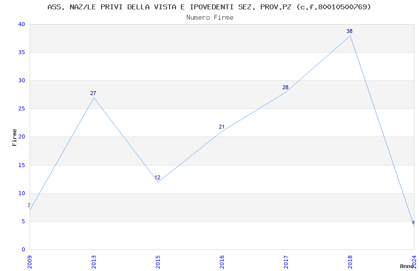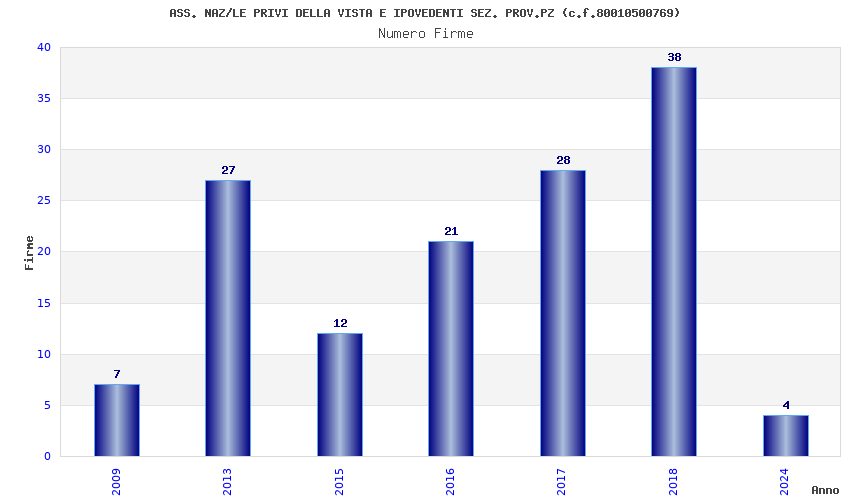 | Anno | Firme | Importi | Media | Naz. | Reg. | Prov. | Comu. |