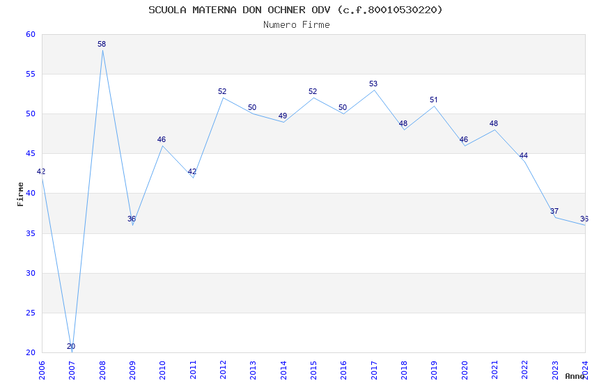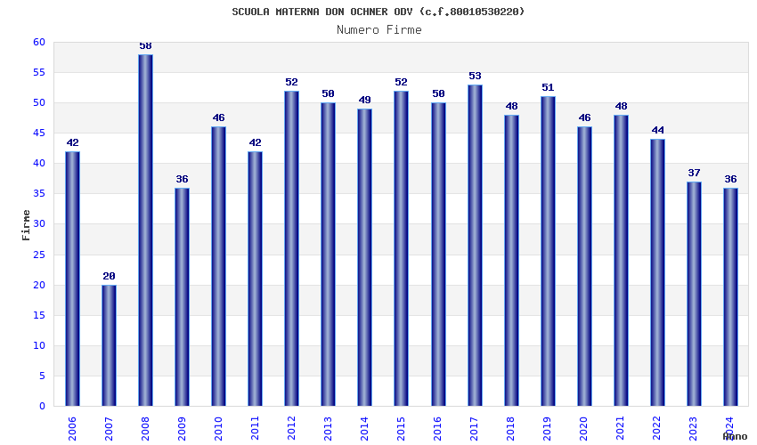 | Anno | Firme | Importi | Media | Naz. | Reg. | Prov. | Comu. |
