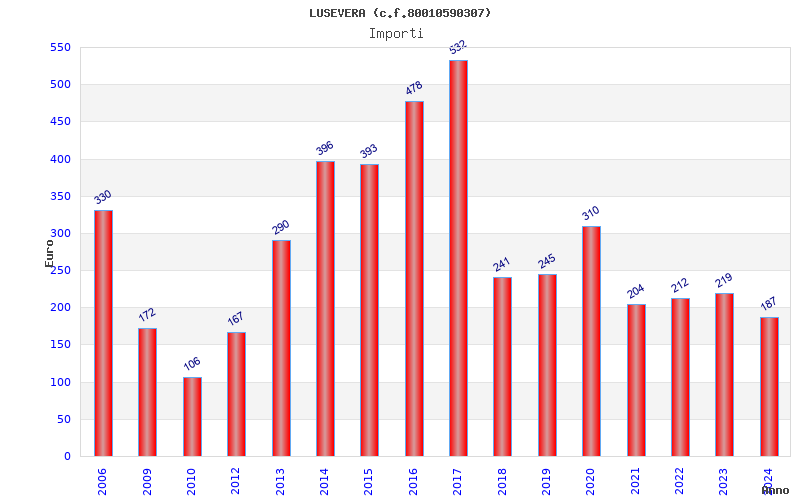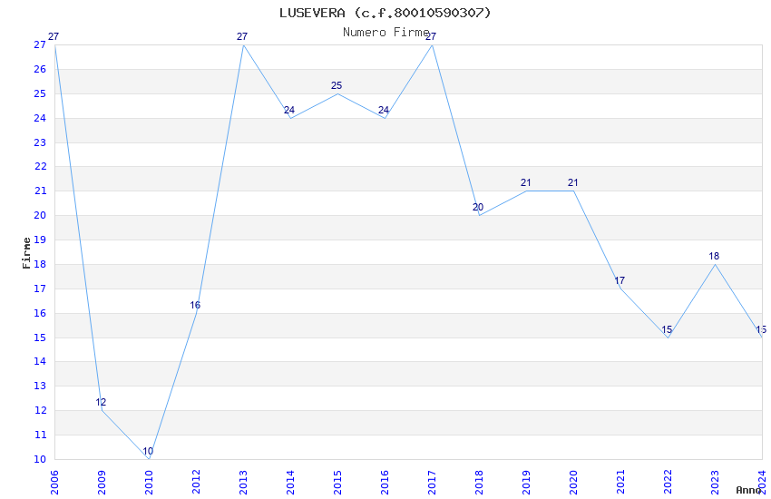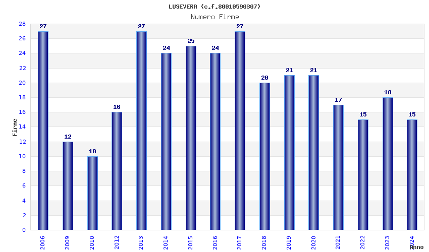 | Anno | Firme | Importi | Media | Naz. | Reg. | Prov. | Comu. |