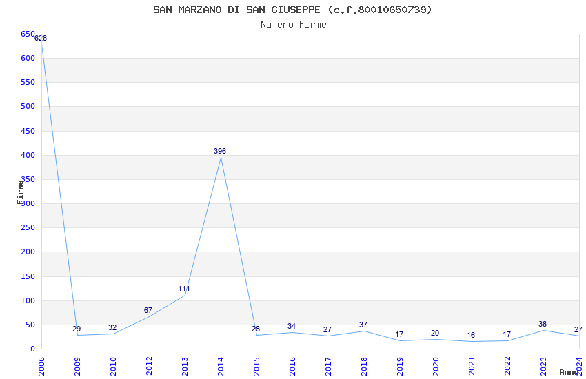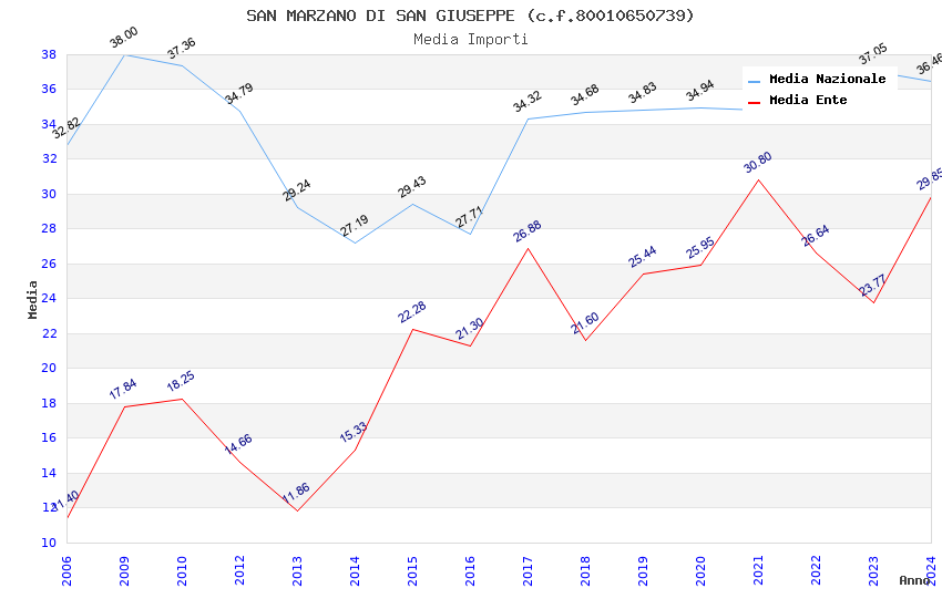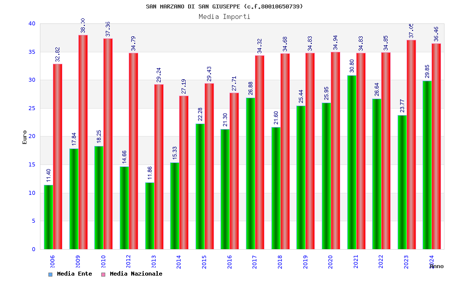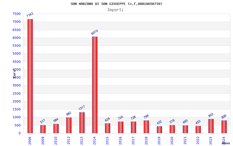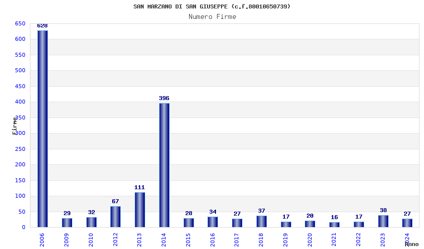 | Anno | Firme | Importi | Media | Naz. | Reg. | Prov. | Comu. |