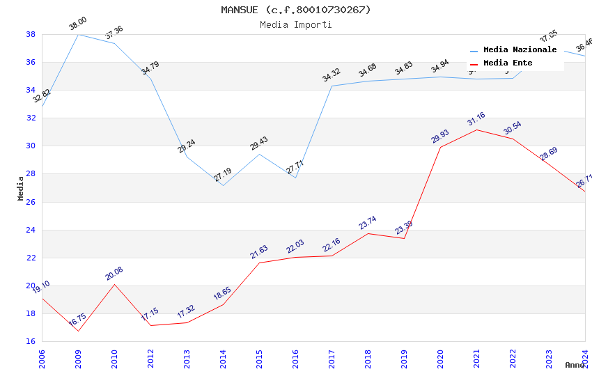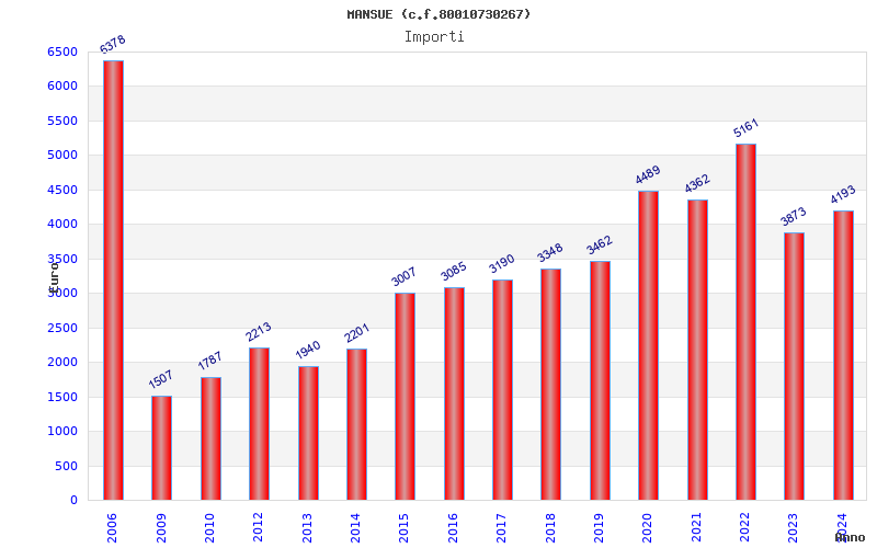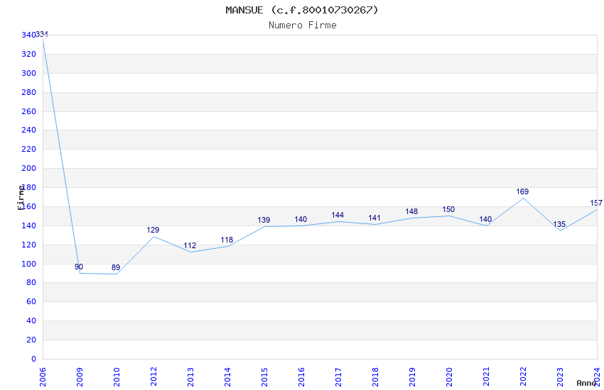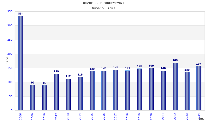 | Anno | Firme | Importi | Media | Naz. | Reg. | Prov. | Comu. |
