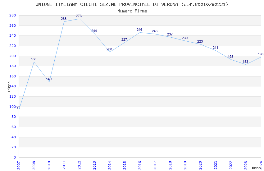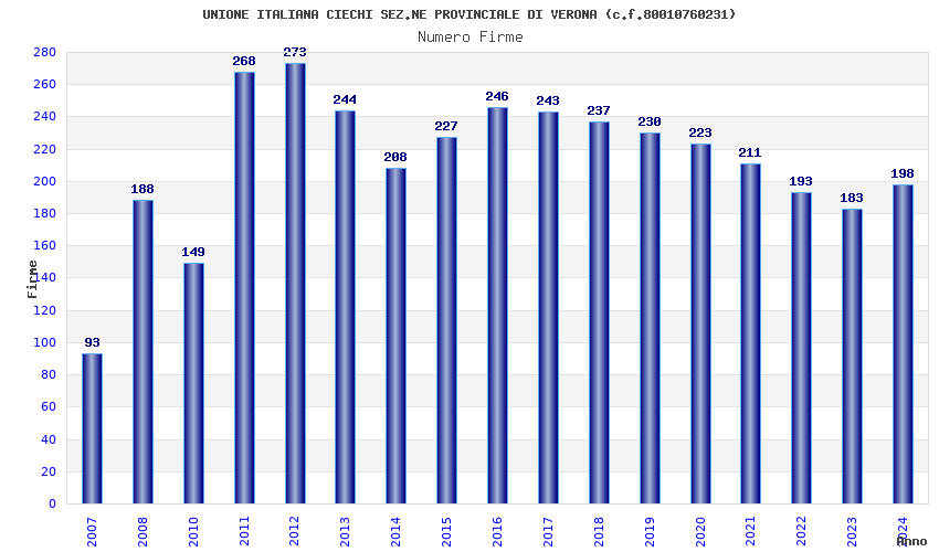 | Anno | Firme | Importi | Media | Naz. | Reg. | Prov. | Comu. |