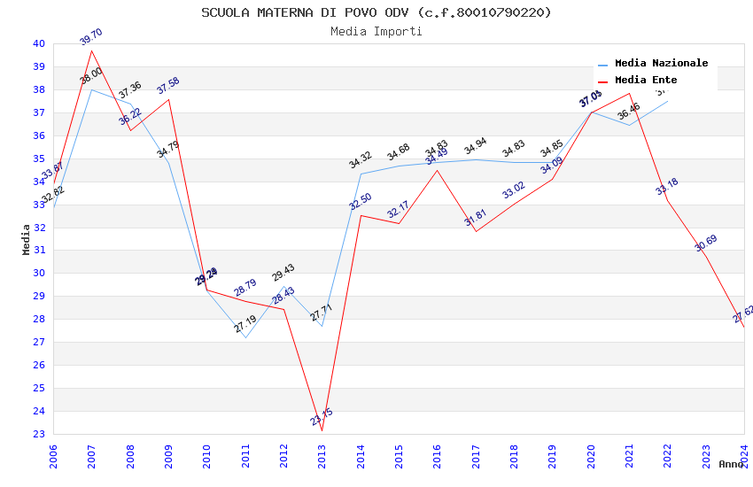 | Anno | Firme | Importi | Media | Naz. | Reg. | Prov. | Comu. |