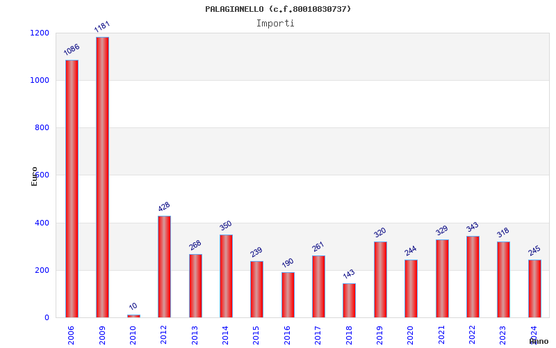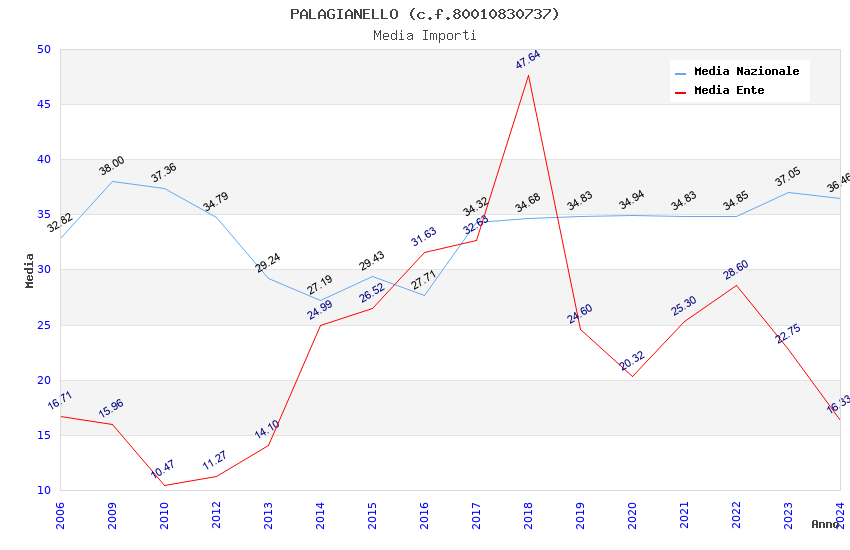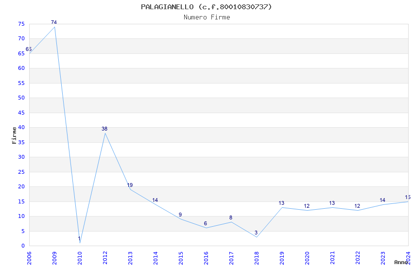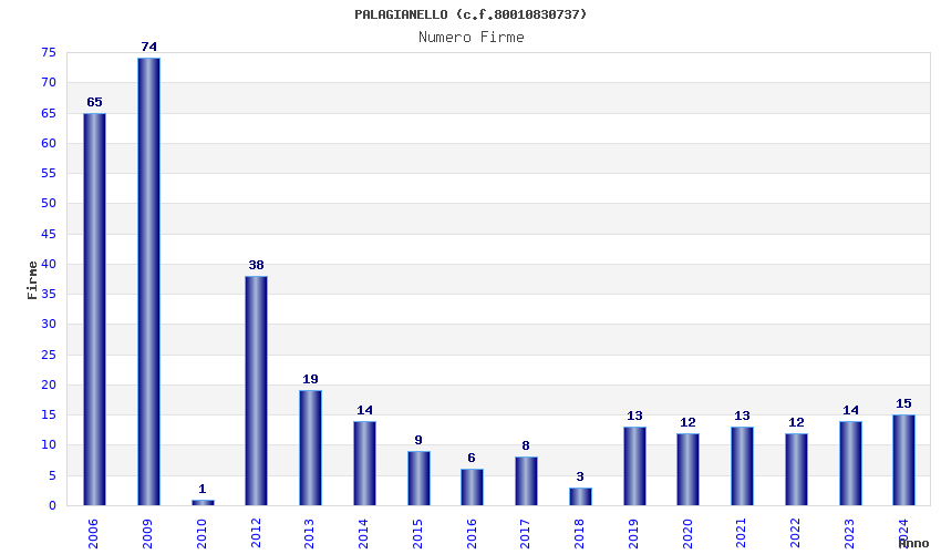 | Anno | Firme | Importi | Media | Naz. | Reg. | Prov. | Comu. |