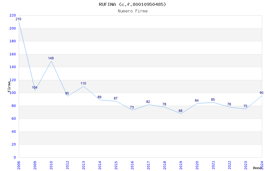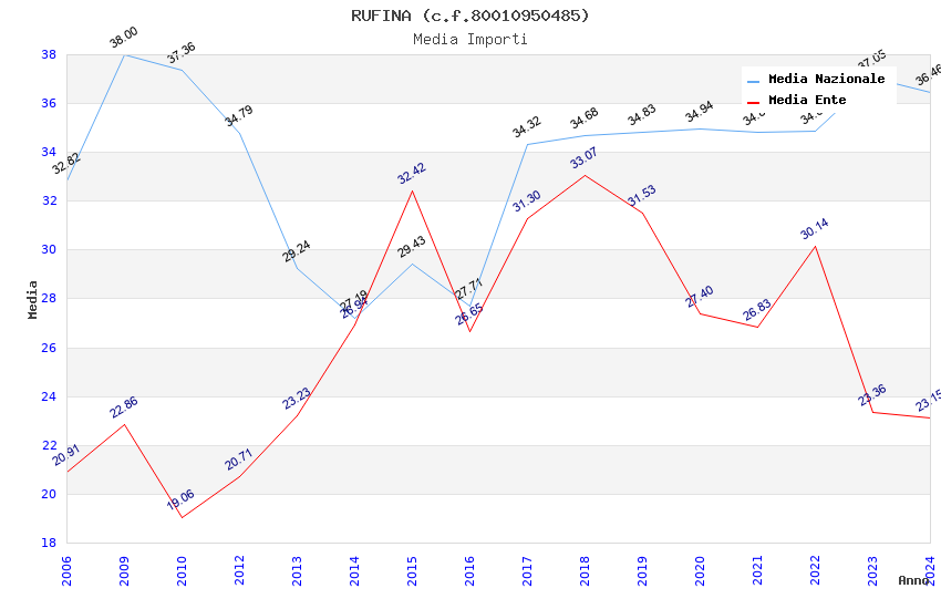 | Anno | Firme | Importi | Media | Naz. | Reg. | Prov. | Comu. |