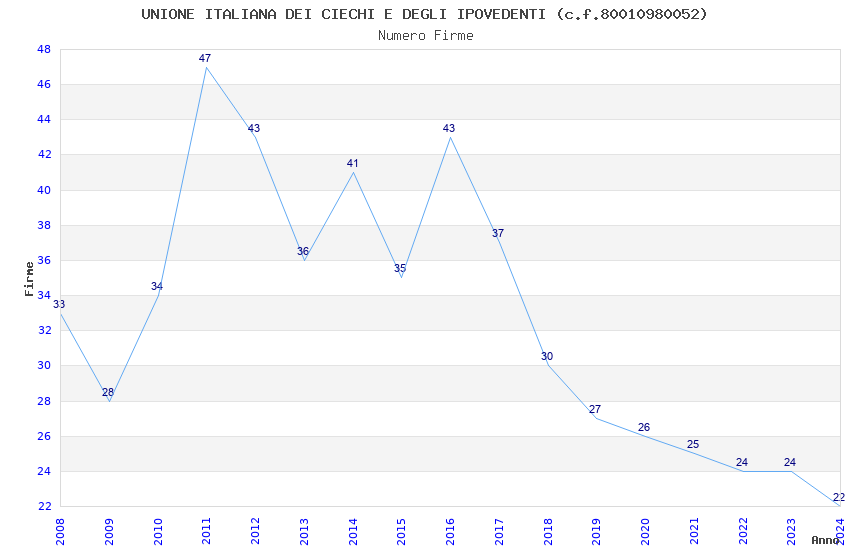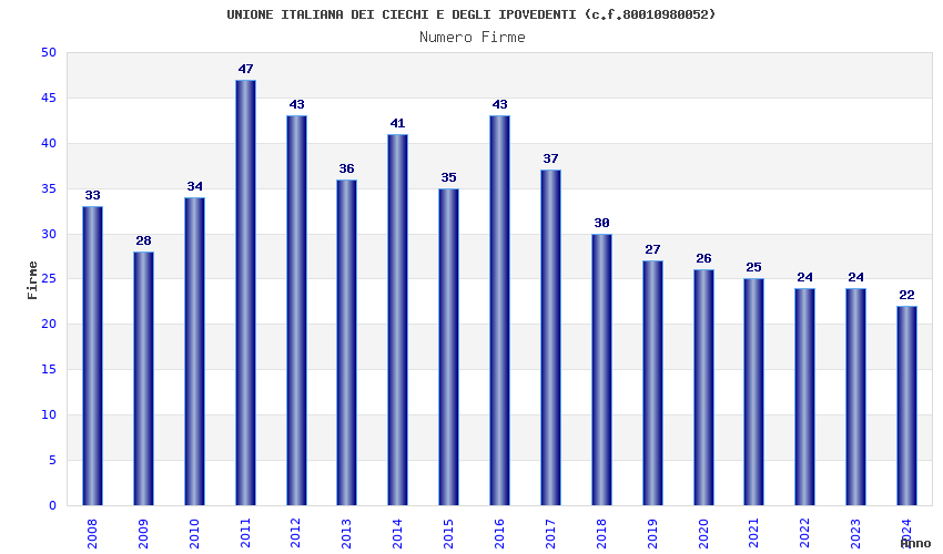 | Anno | Firme | Importi | Media | Naz. | Reg. | Prov. | Comu. |