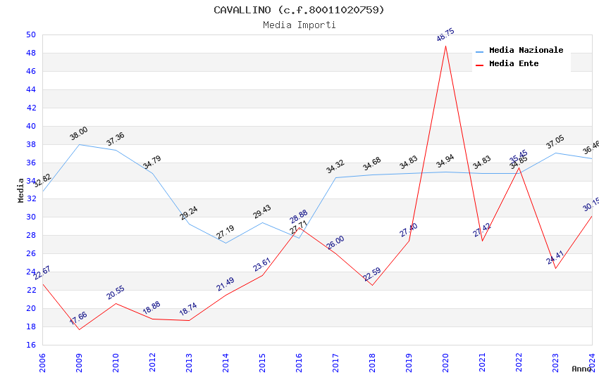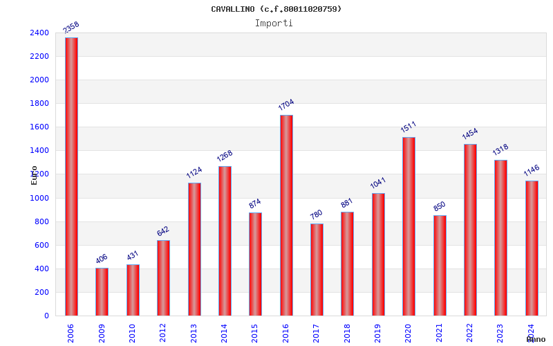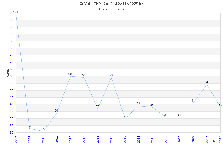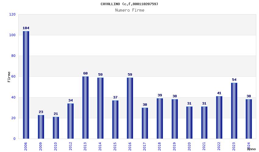 | Anno | Firme | Importi | Media | Naz. | Reg. | Prov. | Comu. |