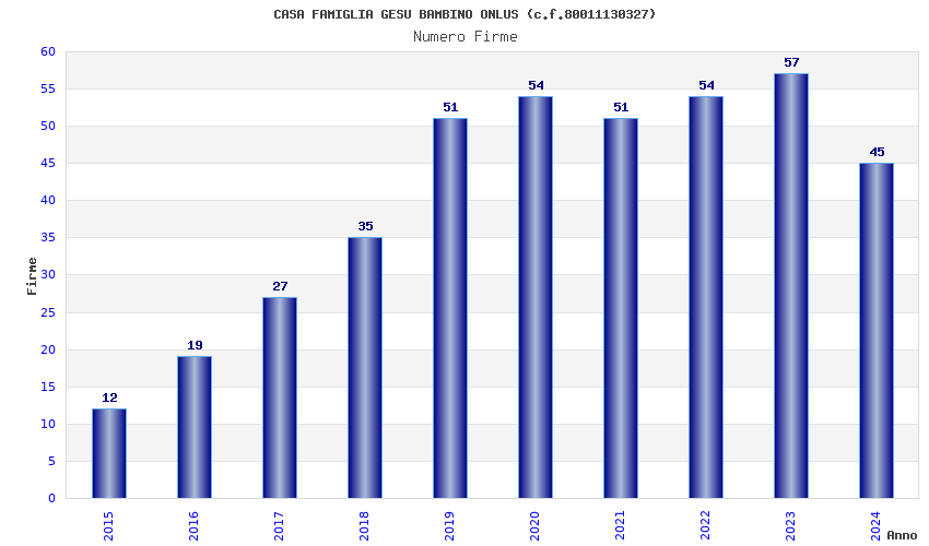 | Anno | Firme | Importi | Media | Naz. | Reg. | Prov. | Comu. |
