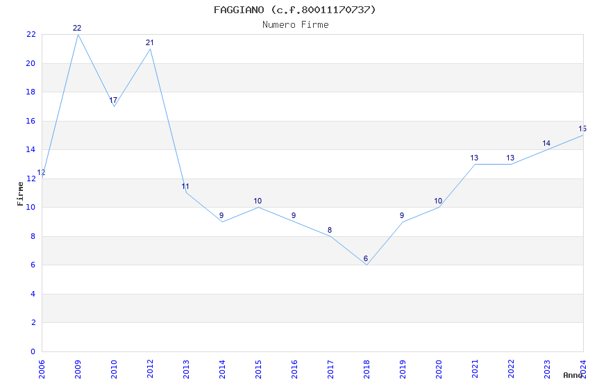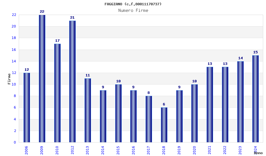 | Anno | Firme | Importi | Media | Naz. | Reg. | Prov. | Comu. |