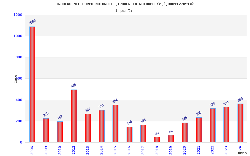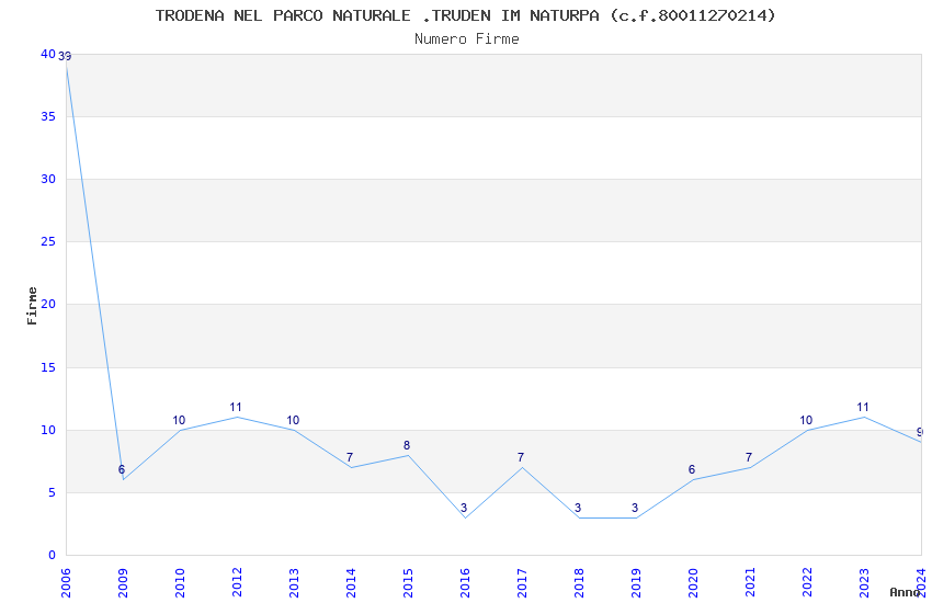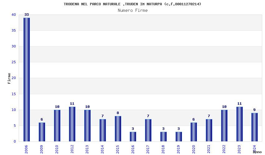 | Anno | Firme | Importi | Media | Naz. | Reg. | Prov. | Comu. |
