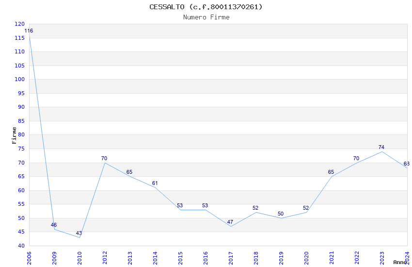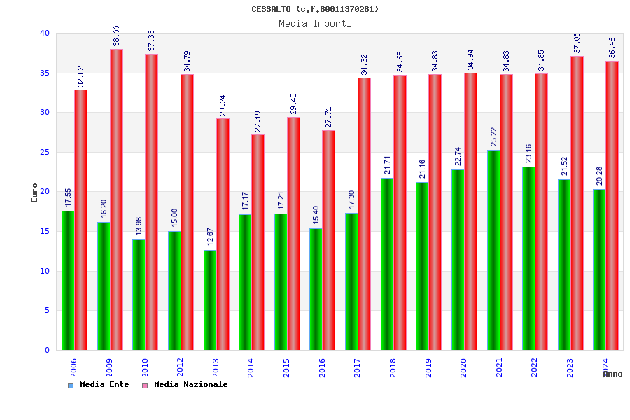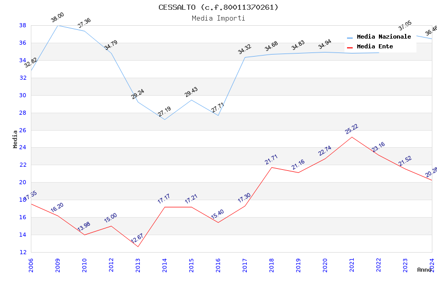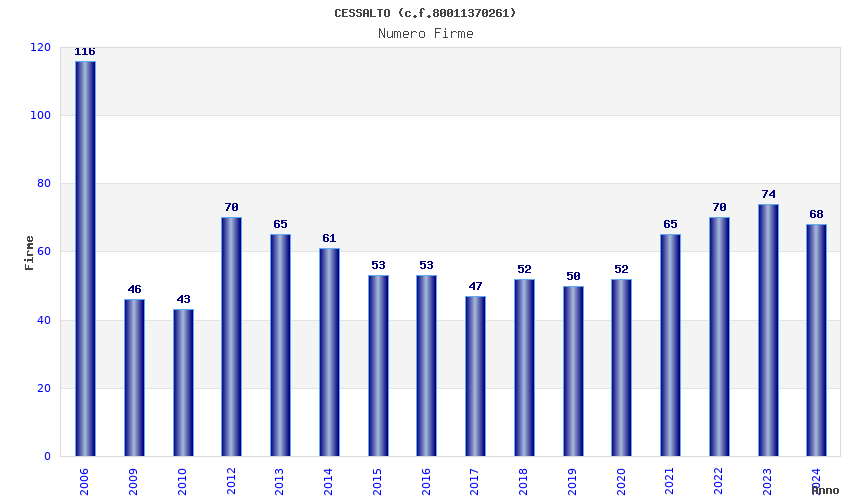| Anno | Firme | Importi | Media | Naz. | Reg. | Prov. | Comu. |